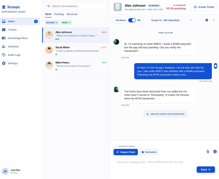 WhatsApp + web assistants that resolve questions instantly and escalate to humans with full context.